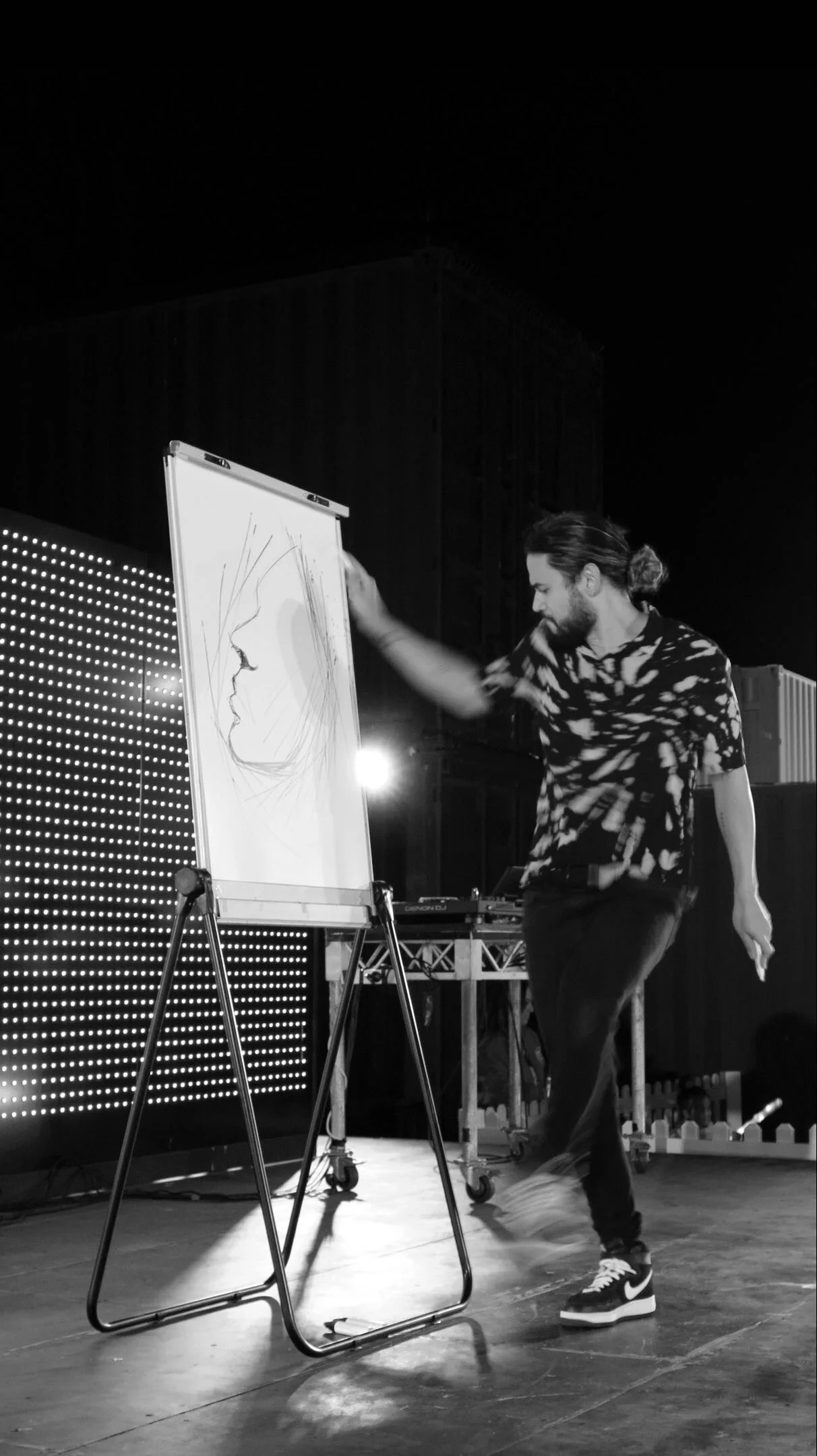 As a performer, Anthony performs regularly around the Gold Coast and Brisbane region. While creating black and white figurative pen drawings, he incorporates music and dance to create a performance that is high energy and expressive. “It’s great to see the crowd surprised and engaged when I create the speed drawings. I could take it easy and create more detailed pieces in 5 minutes, but I know it’s more of entertaining when I put my whole body into the process. Plus it’s fun to use my background as dancer and add rhythm with each pen stroke that hits the surface.”
